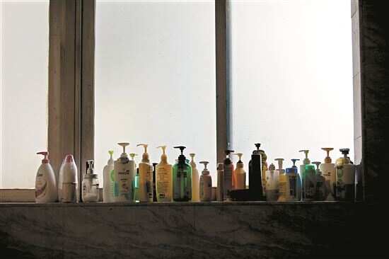 ■每个队员都有自己的洗澡间。一天两次的训练也意味着她们每天要洗两次澡。空荡荡的淋浴间里,留下了满满的洗护用品。