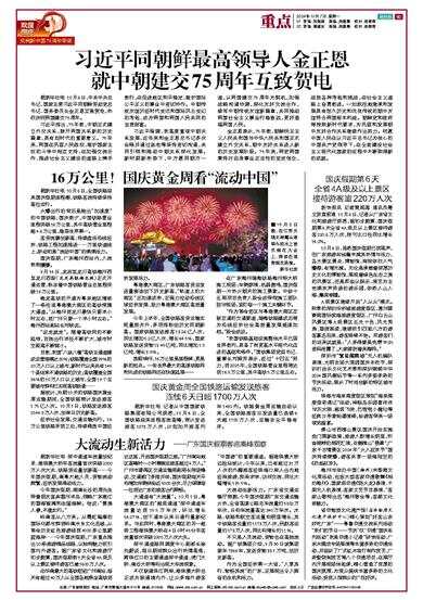 大流动生新活力。广东省交通运输厅预测,今年国庆假期广东交通运输火热,全省高速公路总车流量约5882万车次,日均车流量高达840万车次。水路、铁路和航空客运量均明显增长,其中铁路客运量约1173万人次,民航客运量约178万人次,同比均增长约11%。