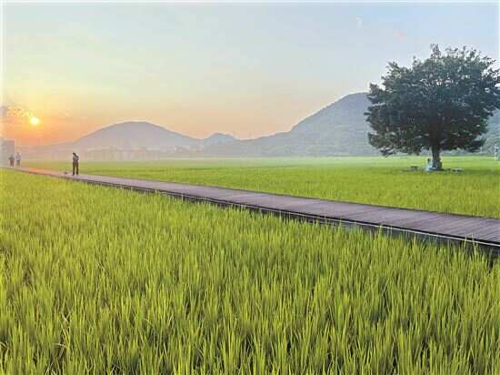 当前,艾米小镇水稻正是抽穗期,黄绿相间的稻田里,微风吹过,稻浪翻滚,只此青绿,如同一幅美丽的田园画卷。艾米稻香小镇是广东省科普教育基地,还是粤港澳大湾区首个以粮食科普和劳动教育为主题的研学基地。在这里,小朋友能了解一粒米的前世今生、人工智能在水稻种植的应用。