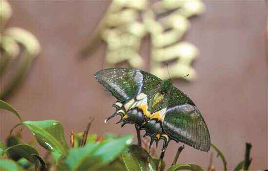 金斑喙凤蝶属鳞翅目凤蝶科喙凤属,位列世界八大名贵蝴蝶之首,是中国唯一的国家一级保护蝶类,被誉为中国的“国蝶”,仅在广东、江西、福建、浙江等少数地区有确切记录。它属于亚热带、热带高山物种,栖息于海拔1000-2000米的常绿阔叶林山地,寄主为木兰科植物,体长30多毫米,翅展85-110毫米,一般一年繁殖两代,野外生存数量稀少,极少被人发现。