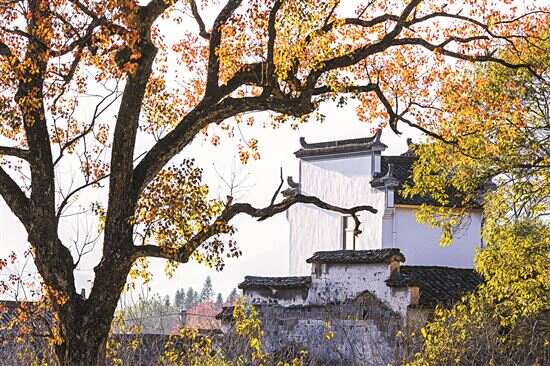■被秋天色彩包裹着的徽派建筑。