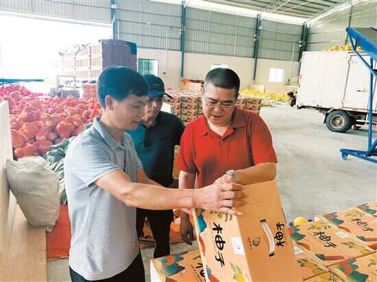 ■陈红兵(右)在铜琶村开展柚子消费帮扶。
