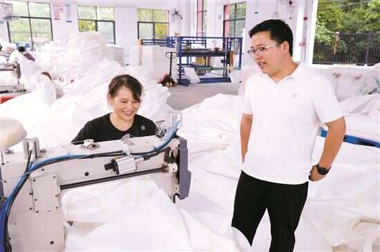 ■秦民飞到吨袋厂调研带动就业情况,与工人深入交流。