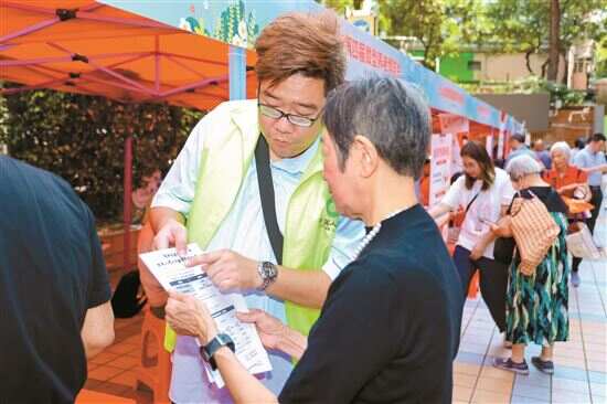 ■中国人寿广东省分公司工作人员向长者讲解“银龄安康行动”相关内容。