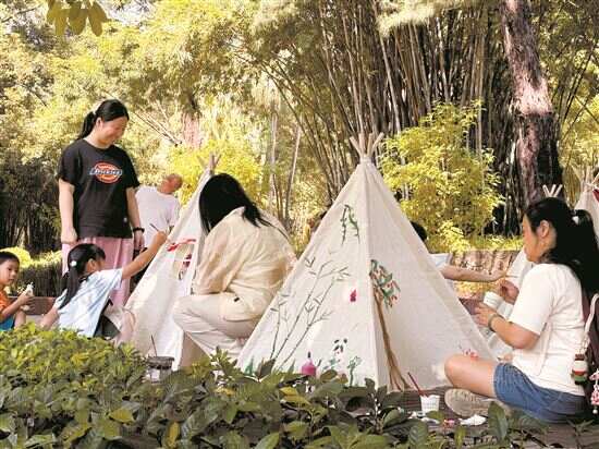 以国庆期间为例,白云山云台花园“漫游喵境嘉年华”主题灯展形成了“白天赏花、夜晚赏灯”两种特色游览体验,昼夜互补、时空互利成为拉动公园假日经济的新引擎;流溪河国家森林公园开展了18个游乐项目,共举办110场活动,植物拓染、皮划艇水上体验及净湖公益活动等吸引年轻游客群体和亲子家庭热情参与;流花湖公园在东北门新时代文明实践站打造了一个“卖花的小角落”,“公园+花艺”赋予公园新功能。