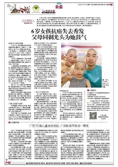 为了在化疗后更方便打理个人卫生,小婕在医生建议下,舍弃了一头秀发。“女儿平时最宝贝她的头发,一寸都不让剪短。这次,她一边剪发一边哭,我们心疼极了。”但是,阿燕和丈夫坚强忍住了悲伤,他们陪女儿一同剃头,为孩子打气。
