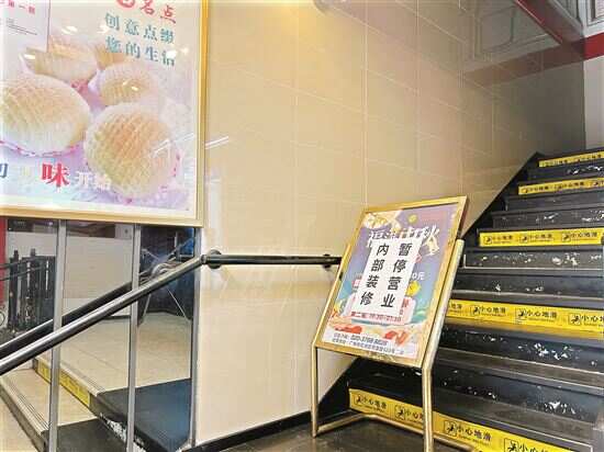 记者又来到位于粤垦路分店,看到其入口处被杂物遮挡住,贴出内部装修暂停营业的告示。而在二楼酒店范围内,则是拉下了铁闸。透过铁闸内看去,桌椅都在,但没有装修迹象。同样的情况也发生在东华西店、石溪店等门店,这些门店也是在9月底关门,且都说是“内部装修,暂停营业”,但店内桌椅还在,没有任何装修动工痕迹。