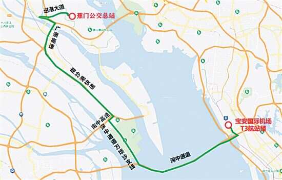 线路始发站为蕉门公交总站,终点站为深圳宝安国际机场,全线采用高快速路,实现点对点直达。据悉,蕉门公交总站与深圳机场均有舒适的候车区可供旅客候车。该线路使用豪华客运大巴进行运营,将给乘客带来安全又舒适的乘车体验。目前线路开通工作正在紧张筹备中,敬请广大市民期待。