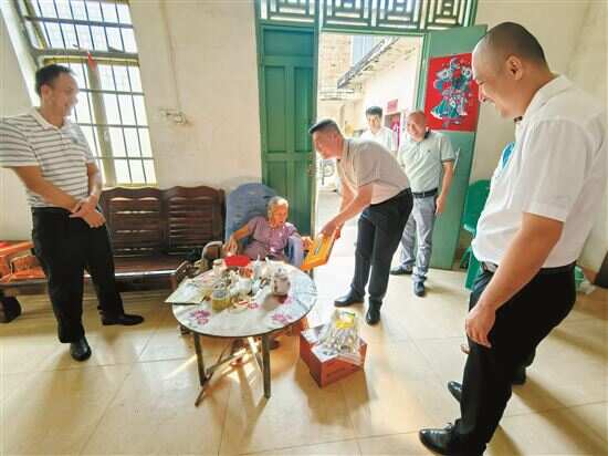 新快报讯 记者朱清海报道 近日,由省消防救援总队牵头,携手中交广州航道局有限公司组成的驻湛江市遂溪县界炮镇帮镇扶村工作队(下称“工作队”),联合界炮镇党委、政府对全镇39位100岁及以上老人开展上门慰问尊老敬老关爱活动。