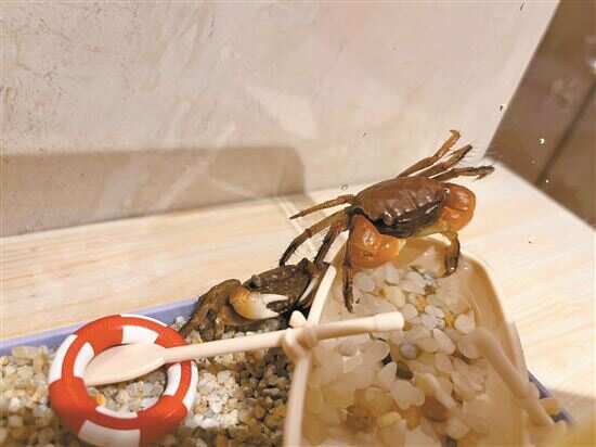 有趣的是,小谈为这对螃蟹精心布置了一个温馨的“小家”,还给它们起了有趣的名字——“黄焖”和“油炸”。“小螃蟹会搓手、‘洗澡’,吃起东西很慢,那样子真的特别搞笑,看它们心情一下子会好很多,非常解压。”