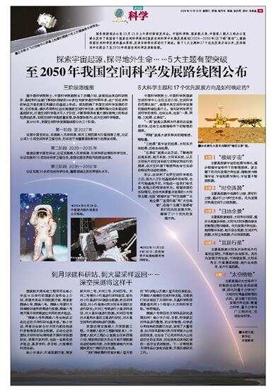 至2050年,我国空间科学发展路线图分为三个阶段: