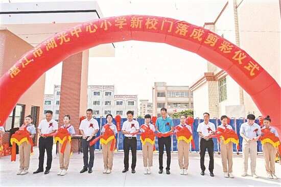 新快报讯 记者朱清海报道 崭新的校门、醒目的校牌,与师生家长脸上绽放的笑容,组成了一道亮丽的风景线。10月10日,在广州市驻湛江市麻章区湖光镇帮镇扶村工作队(下称“工作队”)积极推动下,经过改扩建的湖光中心小学新校门正式落成启用。