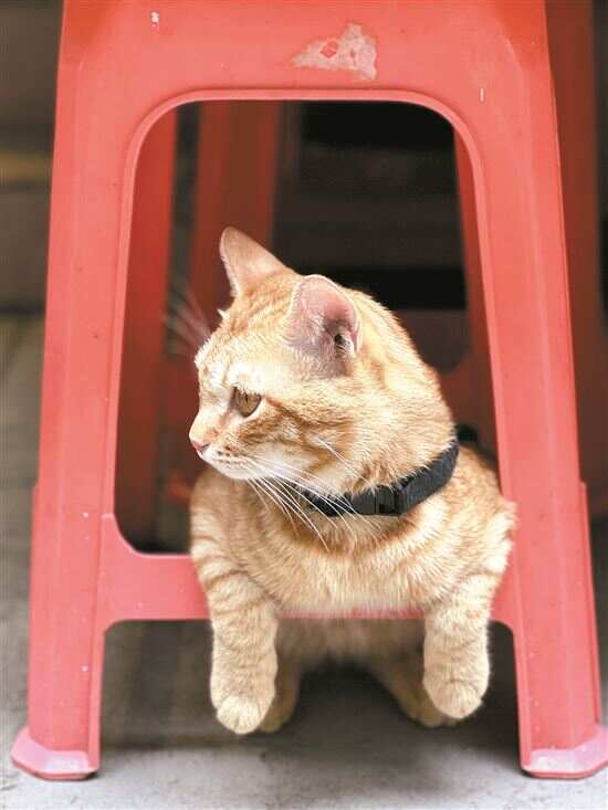 而在石板路隔壁,店铺门前“广东省省凳”下方的横条上,同样趴着一枚喵星人,如悠闲的老人家一般,将两个前爪搭在上面,暗中观察着石板路上的人们以及来往人们的一举一动。店家抱着个一两岁大的男宝,见人停下来拍猫,便自来熟一般地随口说:“对面人家那猫是它的兄弟,一母同胞。”说着便极热心地站起身,一步跨过石板路,去敲对面人家的窗户:“喂!出来喂!睇下你家的猫了喂!”