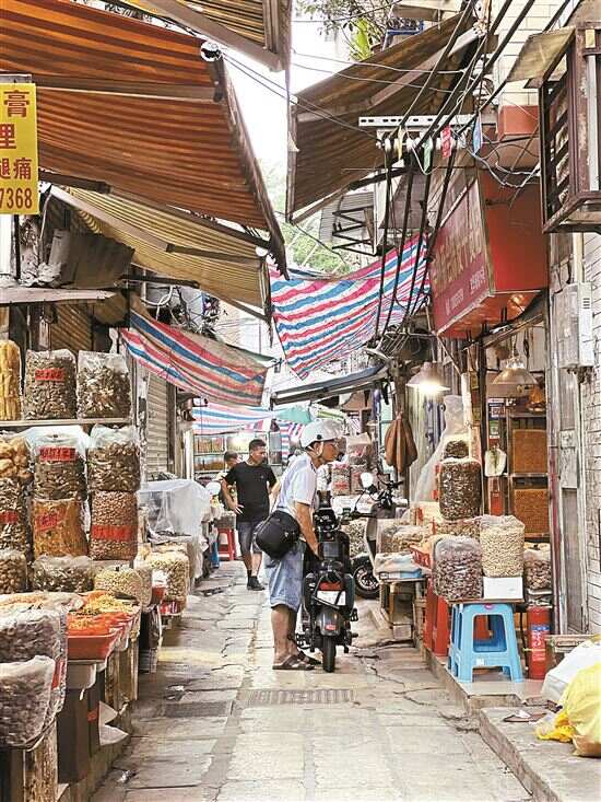 南北走向的宝华南,连接宝华大街,浅窄的巷道两旁是林林总总的铺面,交叉着住家的门窗,让人一时分不清究竟是商还是住,抑或是亦商亦住,两旁搭出的“雨棚”在一定程度上遮挡了视线,有如“盲人摸象”般没办法窥得街边建筑的全貌。