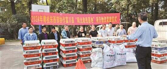 新快报记者了解到,一直以来,四会、富川两地用好用活粤桂协作资金,积极为残疾人谋划就近就业、稳定增收项目,深入推进“阳光助残基地”项目实施见效。该项目主要通过与养殖户签订养殖服务协议,将刚出蛋壳的雏鸡通过模拟农户养殖方式进行科学喂养,待雏鸡长到三斤左右后免费发放给残疾人家庭饲养。2024年“阳光助残基地”项目共帮扶残疾人家庭165户,免费送鸡苗7120只,为每户残疾人家庭实现增收4200余元。