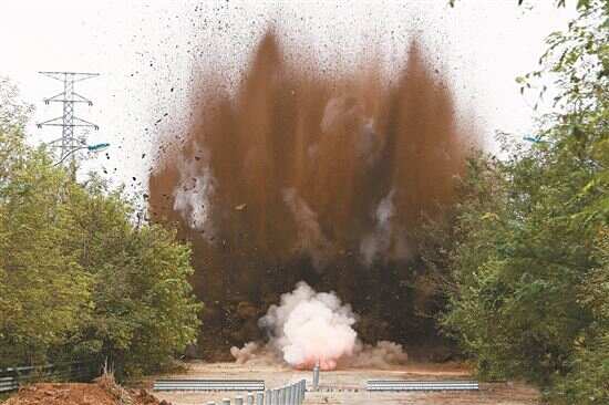 ■朝方以爆破方式封闭公路。新华社发