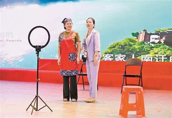 ■来自梅州的女企业家表演小品 《幸福侨乡在直播》。