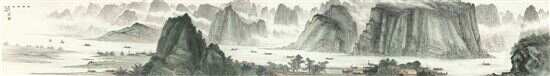 值得一提的是,本次展览首次展出了2.6米长的手卷《阳朔风光》,这是陈金章完成于2019年的作品。陈金章回忆称,2019年游览阳朔,细细观察了当地的山、水、树、房子坐落的位置,感受不同时间段里光和影的变化,想象一下本地人所养的家禽或小动物,最终按照自己对阳朔景色的体会来绘就。他表示,阳朔不是大山大岭的大气派,而是有独特的山明水净之感。所以,“我表现的是雅和朴素,它的山重重叠叠,我用淡墨来表现它的雅气。”