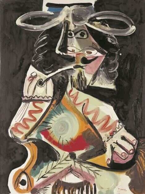 ▲抽烟斗的男人 Man with A Pipe 巴勃罗·毕加索(西班牙) Pablo Picasso(Spain) 布面油画 Oil on canvas 130cm×97cm 1969年 中国美术馆藏