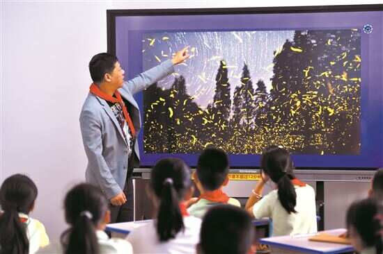 在学校的智慧教室里,华中农业大学的“萤火虫教授”付新华给孩子们带来了一堂关于萤火虫的科普课。黄土咀的孩子们第一次听说,这些夏夜里星星点点的小飞虫,是生态健康的重要指标;第一次通过视频得知,蜘蛛会用“计谋”对萤火虫进行捕食。
