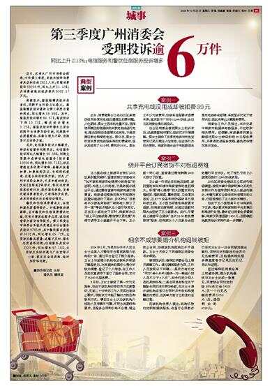 近日,记者从广州市消委会获悉,今年第三季度,系统共接待消费者来访和咨询2821人次;受理消费投诉69206件,同比上升21.13%;为消费者挽回经济损失9392.17万元。