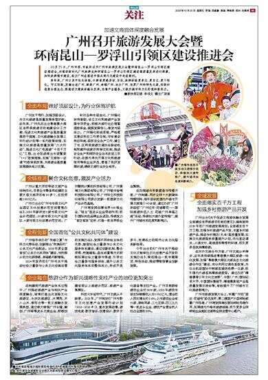 10月25日,广州市委、市政府召开广州市旅游发展大会暨环南昆山—罗浮山引领区建设推进会,对推动新时代广州旅游业和环南昆山—罗浮山引领区建设高质量发展进行部署,加快旅游强市建设,助力广州在推进中国式现代化建设中走在前列。