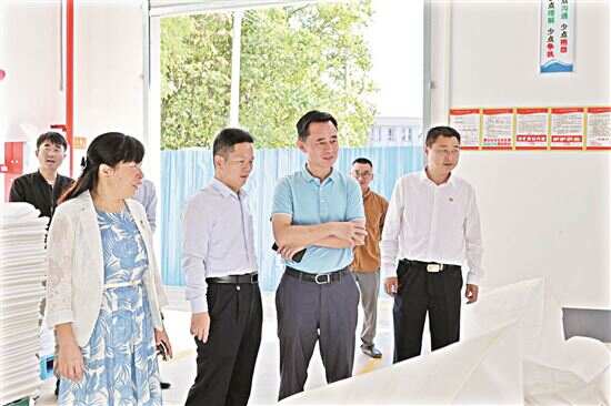 调研人员走进乡村振兴车间吨袋厂,傅晓峰介绍了吨袋厂的详细情况。吨袋厂作为广州市国资国企2023年乡村振兴、对口支援协作和帮扶合作重点项目,由广州环投集团捐资近50万元购置设备、利用三排镇南岗村原有空置房屋建设而成。自今年4月投产运营以来,吨袋厂每月产销量超过2万个,目前已实现近400万元的销售额,不仅为周边3个经济薄弱的行政村增加了稳定的村集体收入,还为当地近30名村民提供了灵活就业岗位。调研人员表示,吨袋厂充分结合帮扶单位的采购需求和三排镇的人力资源,发挥组团帮扶优势,创新产业帮扶模式,为深化驻镇帮镇扶村工作提供了参考借鉴。