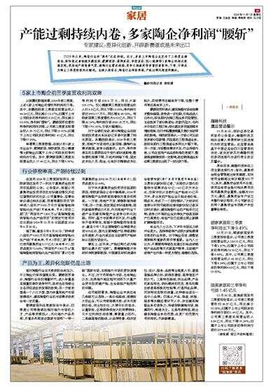 箭牌家居则在季度报告中表示,四季度公司将继续加强对海外市场的人才、产品等资源投入,优化海外产品布局,并重点布局发达国家市场和“一带一路”国家市场,实现海外市场的更快速增长。不过,对于布局海外市场,也有陶企认为,如果海外地区短时间吸引大量产业资本投资建产能,也会面临产能饱和的问题。