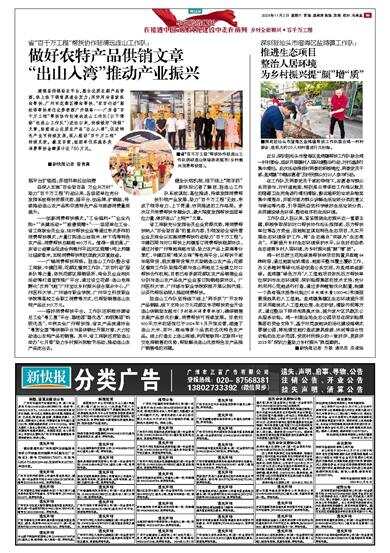 ——搭好消费帮扶平台。工作队还积极协调省总工会“粤工惠”平台、碧桂园“碧优选”、钧明集团“钧明优选”、中洲农会广州帮扶馆、省农产品流通协会“粤贸全国”等供销平台与县供销社开展对接,大力拉动连山农特产品的销售。其中,省工商联还资助连山举办“七月香”助力乡村振兴购物节活动,推动连山农产品走出去。