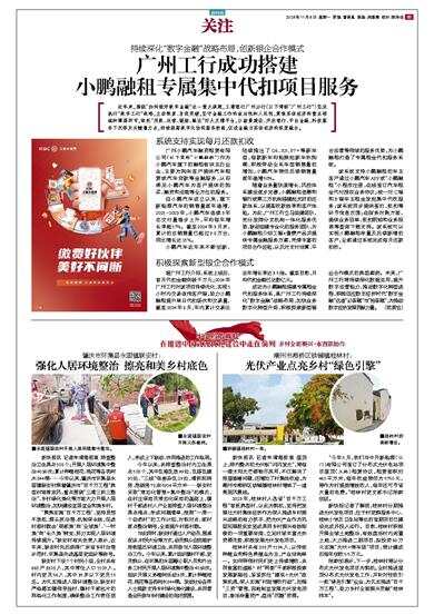 成功为小鹏融租搭建专属租金代扣服务体系,是广州工行持续深化“数字金融”战略布局,加快业务数字化转型升级,积极探索新型银企合作模式的典型案例。未来,广州工行将持续深化数据运用,提升数字运营能力,推动数字化转型进程,积极回应数字经济时代“数字金融”这道“必答题”与“抢答题”,为推动数字经济发展贡献力量。(范昊怡)