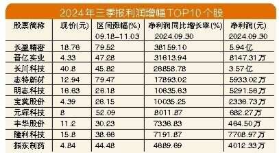从净利润增幅来看,有1942家公司净利润同比增幅超10%,541家超过100%。其中长盈精密净利润增幅逾381倍,荣获今年三季度“增长王”。此外,晋亿实业、长川科技和志特新材、明志科技、宝莫股份净利润增幅均超100倍。自9月18日上证指数从2689.7点低位拉升以来,这些个股均有明显涨幅,区间在25%至80%之间。