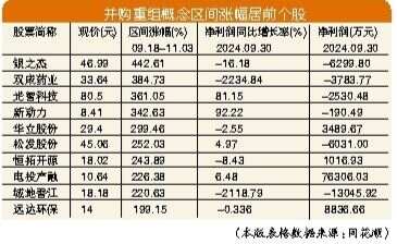 虽并购重组概念股阶段涨幅巨大,但是从三季报业绩来看,参差不齐。207家概念股中,仅有123家公司净利润实现正增长,占比近六成。其中,国泰君安、赛力斯、赛轮轮胎、华润三九和中国船舶净利润均超20亿元。而净利润亏损公司中,华夏幸福、维信诺、亚泰集团和克劳斯亏均超10亿元。