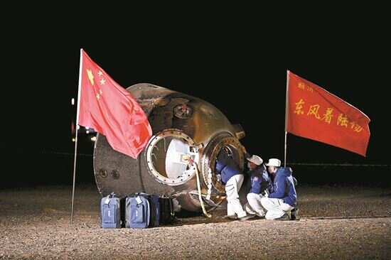 地面搜救队伍闻讯而动,闪烁的车灯照亮了戈壁滩,如同一条金龙,蜿蜒着向预定着陆点进发……现场医监医保人员确认航天员叶光富、李聪、李广苏身体状态良好,随后3名航天员分别出舱,向大家挥手致意,现场响起热烈的掌声。