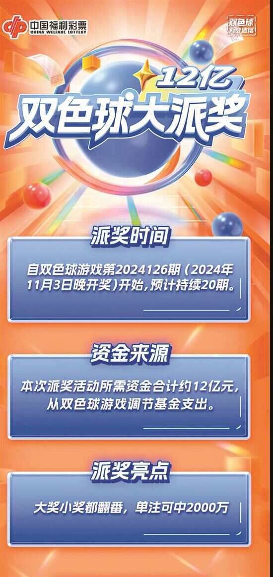 本次派奖活动预计将持续20期,仅针对单票金额超过20元(含)的双色球彩票。派奖总金额为12亿元,其中包括一等奖特别奖4亿元,以及六等奖翻番奖8亿元。