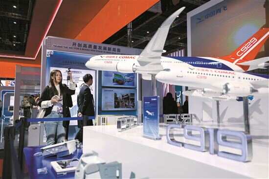 ■11月5日,参会者在中国馆拍摄飞机模型。