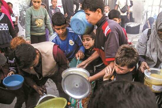 ■10月23日,人们在加沙地带北部的加沙城领取救济食品。新华社发