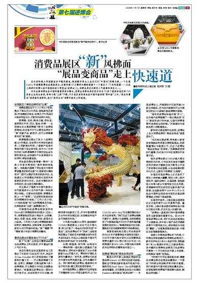 作为全球消费品在中国的最重要展示舞台,进博会消费品展区吸引来自70多个国家和地区的700多家企业同台参展,争奇斗艳“上新”不断,不少首发首秀展品在中国市场实现“零时差”上市,“展品变商品”速度较往届更快,助力“美好生活”消费升级走上快速道。