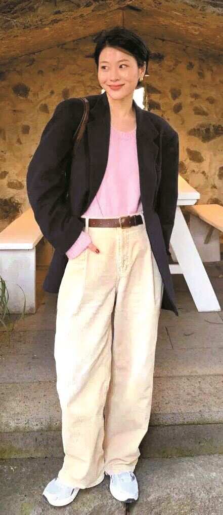 如果想整体感觉柔和些,不妨在海军蓝和驼色间点缀浅浅的粉色,为成熟色彩搭配“减龄”。