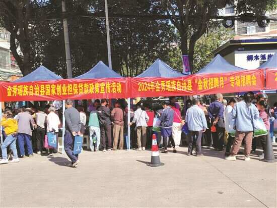 10月24日,以“‘就’在金秋 ‘职’面未来”为主题的2024年金秋招聘月专场招聘会在金秀桐木镇举行,重点服务民营企业、中小微企业、个体工商户、高校毕业生、农民工、退役军人、登记失业人员等各类用人单位和求职群体。