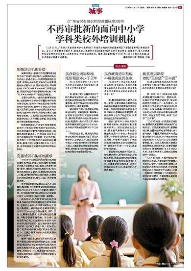 朱建华指出,新修订的《设置标准》适用于在广东省行政区域内,由国家机构以外的法人或者自然人,利用非国家财政性经费,面向社会举办的实施与文化教育课程相关或者与升学、考试相关的补习辅导机构(下称“民办教育培训机构”)和职业技能、职业资格类非学历教育培训机构(下称“民办职业培训机构”)的设立和审批。