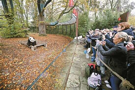 11月10日,在位于比利时布吕热莱特的天堂动物园,人们拍摄大熊猫“天宝”。