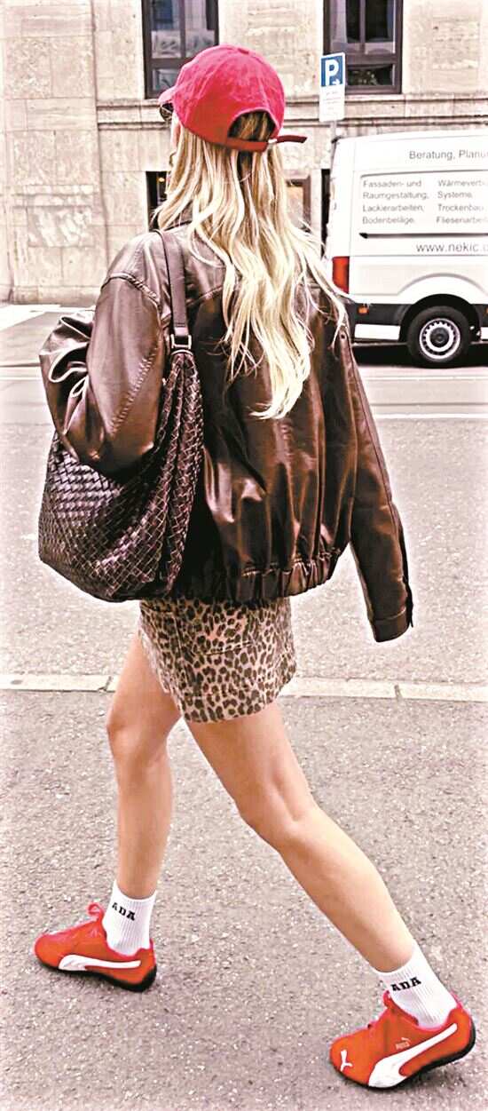 今年流行在造型穿搭中加入一点红,红色薄底跑鞋就是不错的选择。
