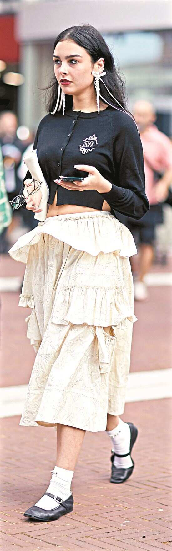 玛丽珍鞋和A字裙、娃娃裙等带少女感的裙子比较搭,打造减龄俏皮的可爱风。