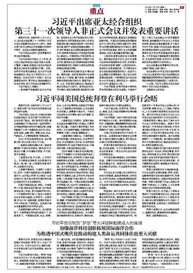习近平强调,希望你们再接再厉,用好这一重大科技装置,加强海洋科技创新,拓展国际海洋合作,为推进中国式现代化、推动构建人类命运共同体作出更大贡献。