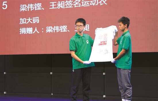 记者从现场工作人员了解到,“梁王”两位健儿深受观众欢迎,他们虽然在训练中,但在得知本届义拍义卖慈善会后,积极捐赠一件签名运动衣,作为义拍的支持。同时,他们还录下一段VCR,表达对病童的祝福。