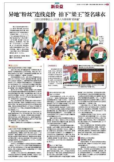陈女士告诉新快报记者:“梁伟铿和王昶两位健儿百折不挠的竞赛精神让人敬佩。我是代表一群喜爱他们的运动粉丝拍下拍品的,一来希望支持两位健儿继续努力,取得更好成绩,更重要的是接力他们传递的善念,促成大家救病童的心愿。”目前,该名爱心人士已完成支付。