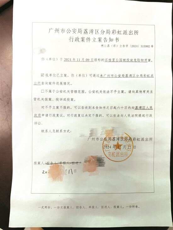 11月20日,荔湾区彩虹街道办事处回应新快报记者称,11月9日晚,街道已经安排工作人员到石桂里广场草地现场查看情况,并对居民发现的几处疑似带毒的食物进行核查辨认,随后便派人清理现场。11月10日,又让环卫工人对现场进行了消杀,目前未再接到宠物中毒的相关投诉。