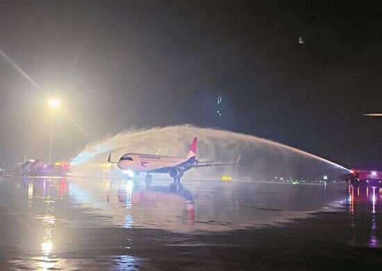 新快报讯 记者李佳文 通讯员机场宣 中亚航空报道 11月25日02∶55,一架乌兹别克斯坦中亚航空C6511航班客机平稳降落在广州白云国际机场,这标志着塔什干至广州直飞航线正式迎来首航。该航线是乌兹别克斯坦中亚航空在中国的首条客运航线,白云机场以民航界最高礼仪“水门礼”迎接新航线开通。