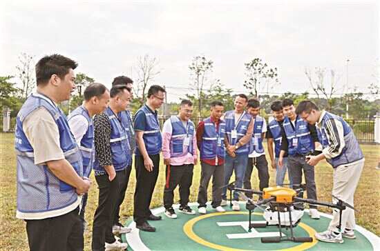 204名学员在位于茂南区的广州国家农业科创中心粤西研究院参加开班仪式后,种植班153人赴广东农工商职业技术学院粤垦校区接受理论知识培训,赴肇庆市高要区、鼎湖区国家级或省级现代农业产业园、示范基地观摩学习;农用无人驾驶航空器培训班51人赴茂名市的广东茂名农林科技职业学院理论培训后,在茂南、信宜无人机教学基地、示范基地开展农用无人机驾驶技术实训、观摩学习。