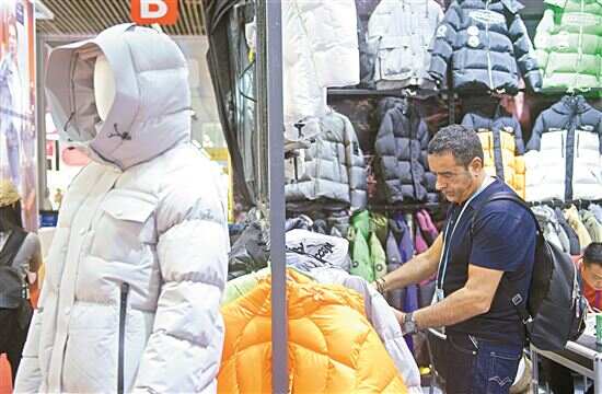■客商在广交会上参观选购羽绒服。 新华社发